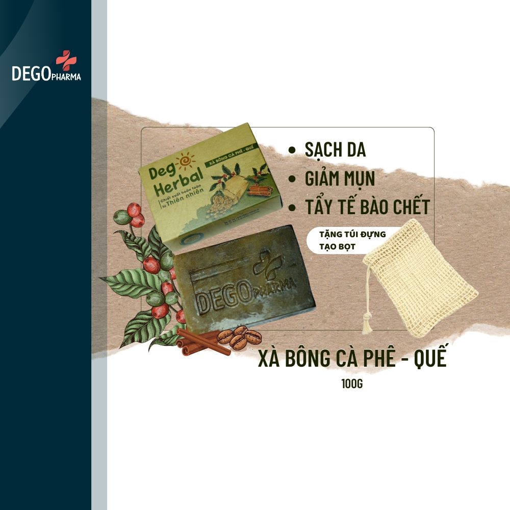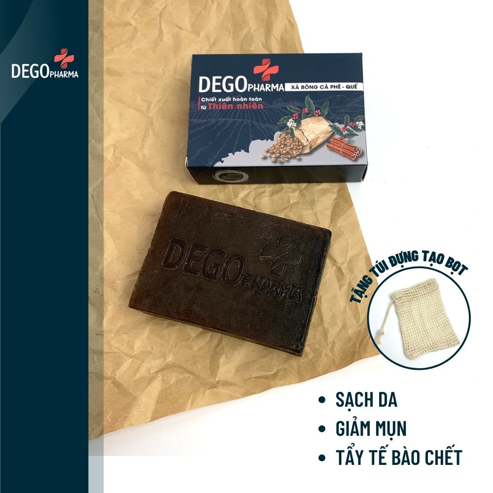 Xà bông quế - cà phê DEGO PHARMA giúp tẩy tế bào chết và dưỡng da trắng sáng.