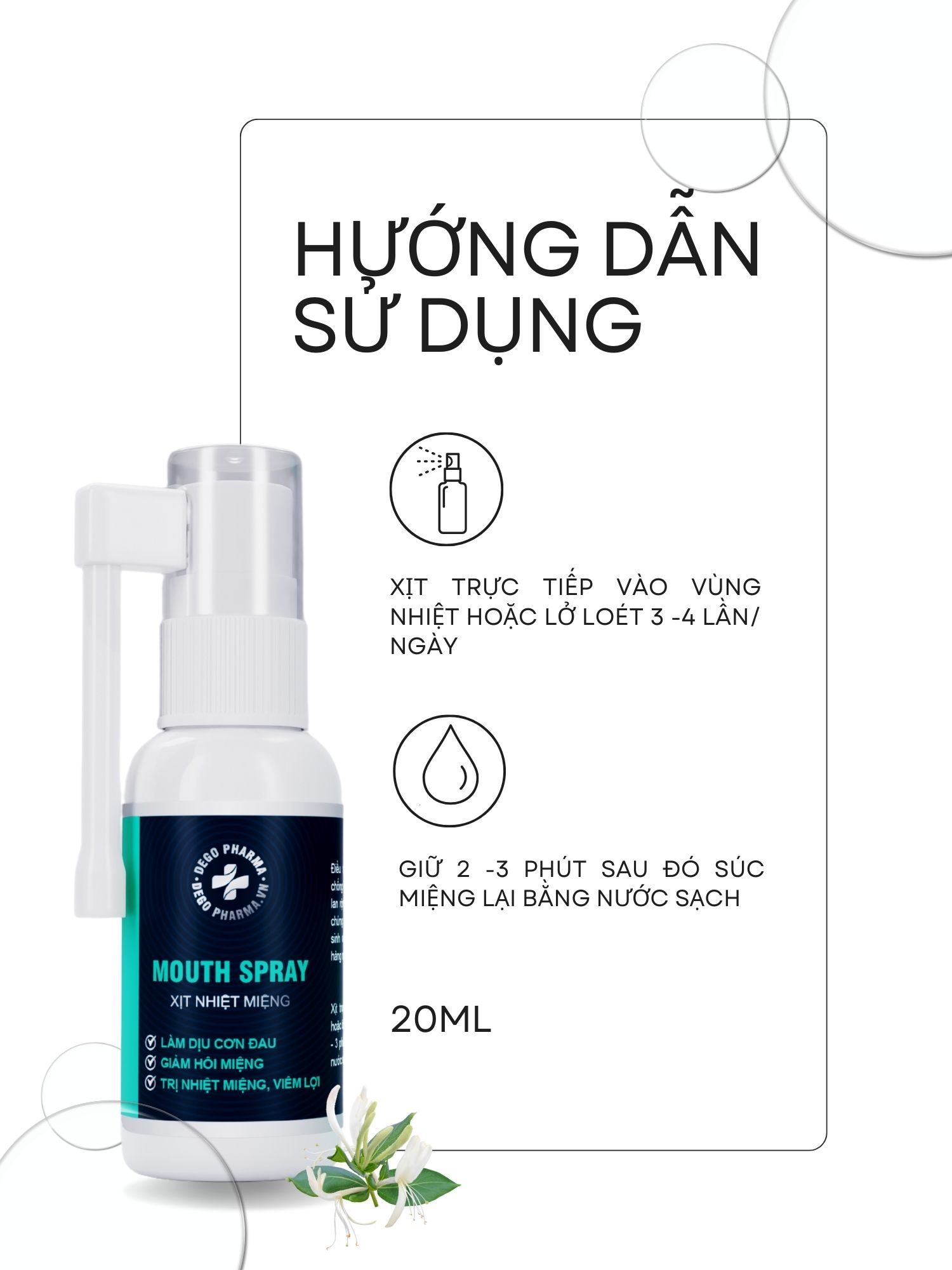 - Xịt trực tiếp vào vùng bị nhiệt hoặc lở loét 3 - 4 lần/ ngày. Sau 2 - 3 phút súc miệng lại bằng nước sạch.